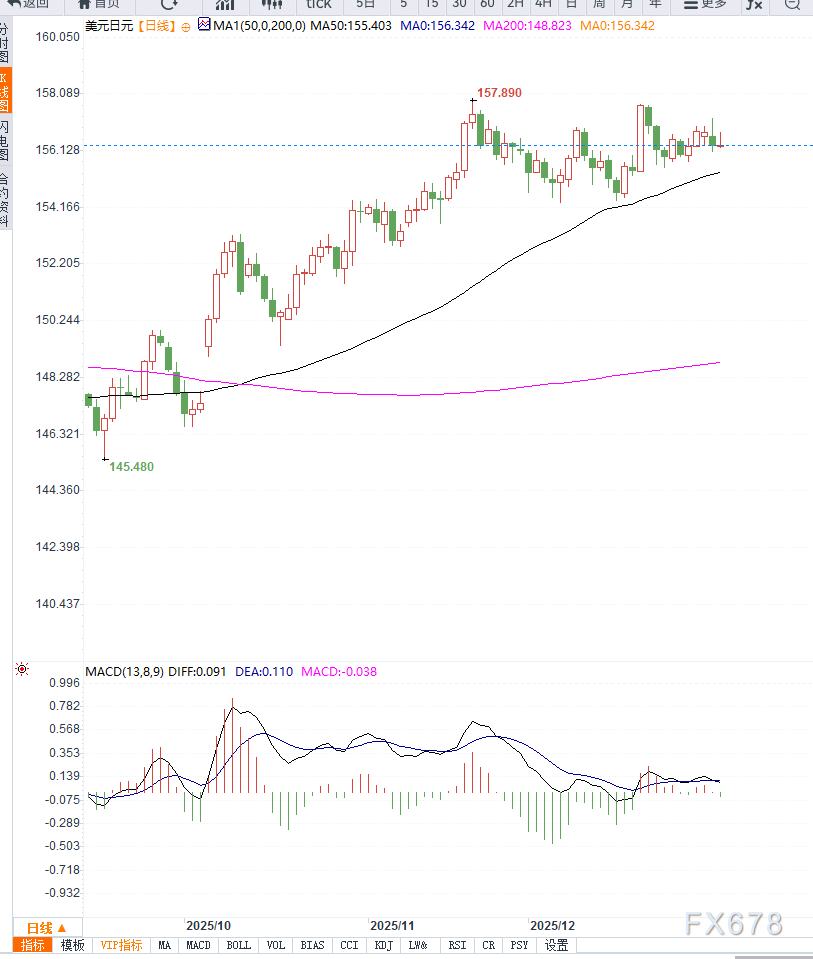 在降息预期尚未被数据证伪之前,美元整体仍处于防御状态,这对美元兑日元构成一定压制。