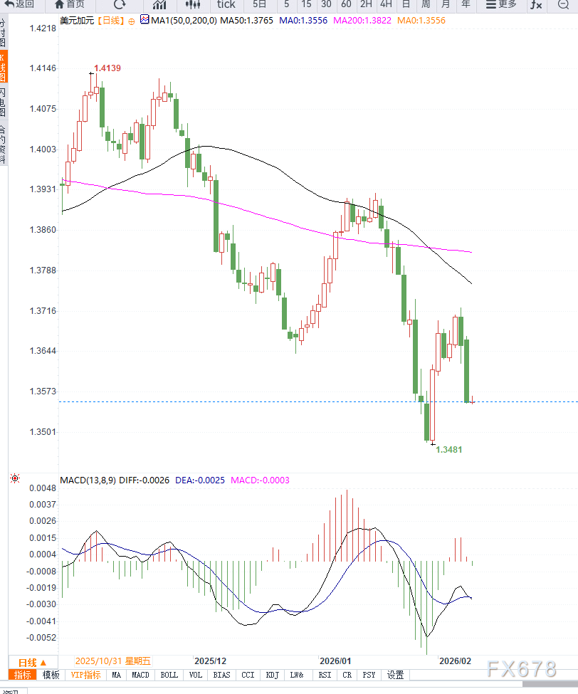 上行方面,1.3580—1.3600区间形成明显阻力,该区域叠加短期均线与前期整理高点,若无法有效突破,汇价反弹动能或再度衰减。在基本面未出现明显利多美元信号前,USD/CAD上行空间预计仍将受到限制。